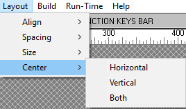 The Center command will center a selected key or key(s) horizontally, vertically, or both.