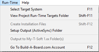 The Build command will save the project, compile the project files, and create the run-time files for the selected target system. By default, a test configuration will be copied into the Target folder for the project to allow you to run & test the current layout. After a successful build, you will be asked if you wish to execute My-T-Soft (from the test configuration). Note: This will close any running instance of My-T-Soft in order to prepare for a new launch.