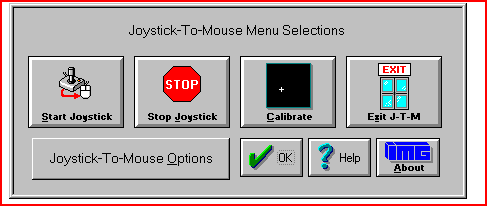 This is the Main Menu when operating Joystick-To-Mouse as an Operator. Click on a button for detailed help on each selection, or review descriptions below.