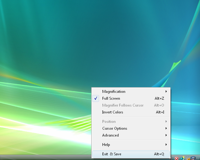 Exit & Save This option will allow you to exit The Magnifier and save the personal settings you have set up while using the product. Keyboard Shortcut: Alt-Q