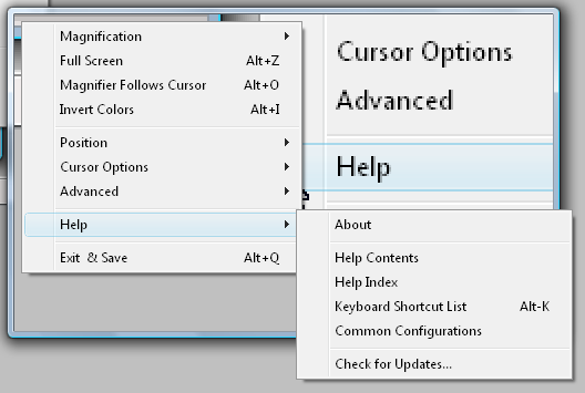 Check for Updates This option checks the Internet for updates that have been provided for your copy of The Magnifier. Before selecting this option, make sure that you are using a computer with access to the Web.