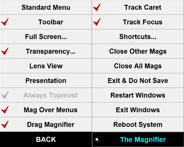 The Magnifier: for Windows; Area and Full Screen Magnifier; Version 1.50 Release 5; User's Guide | ||