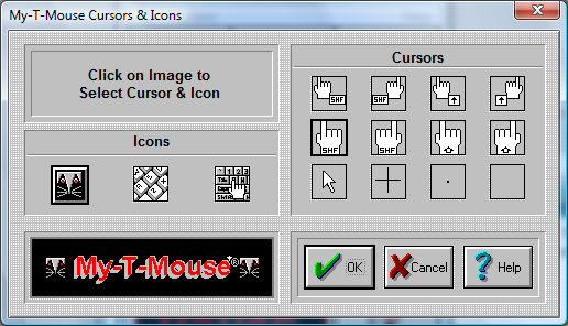 My-T-Mouse enables you to select different Cursors and different Icons for use with My-T-Mouse.