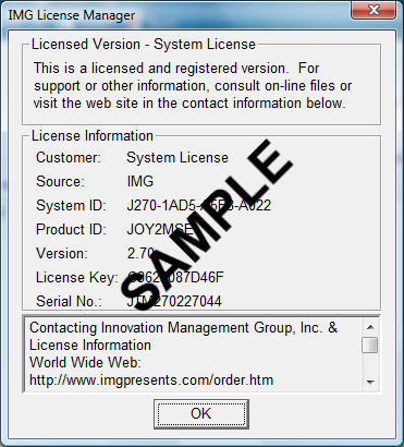 Certificate of Authenticity Note: For Electronic Licenses, and Certificate of Authenticity can be retrieved on IMG's website: https://www.imgpresents.com/orders/account/licmanager.htm. This requires a valid License Key and Serial Number. Once entered, you may view a PDF of the Certificate, or download the Certificate of Authenticity PDF file (for printing or saving).