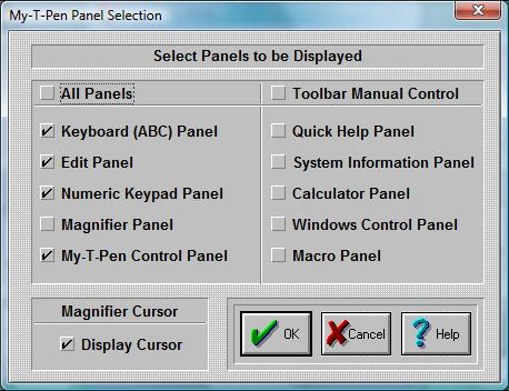 The panels with a check-mark will be open each time you start My-T-Pen.