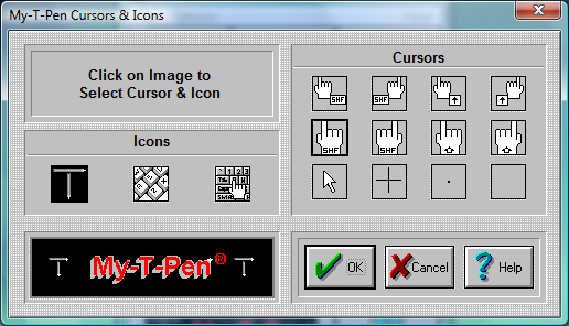 My-T-Pen enables you to select different Cursors and different Icons for use with My-T-Pen.