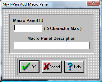 Enter a five letter identifier for your new Macro Panel.