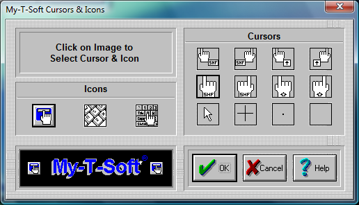 My-T-Soft enables you to select different Cursors and different Icons for use with My-T-Soft.