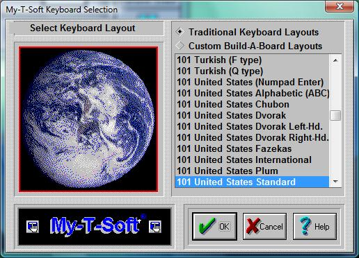 My-T-Soft can operate with many different keyboard layouts. By selecting the same keyboard layout that Windows uses, you can synchronize the display on My-T-Soft with the characters generated in your application.