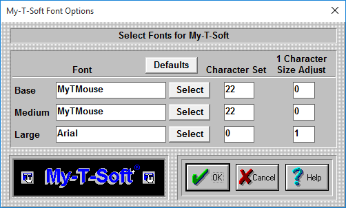 The Font capabilities of My-T-Soft are limited for a variety of reasons. These limited options have only been included as a specific solution for a small subset of customers. Use My-T-Soft Build-A-Board for more complete control over the appearance.