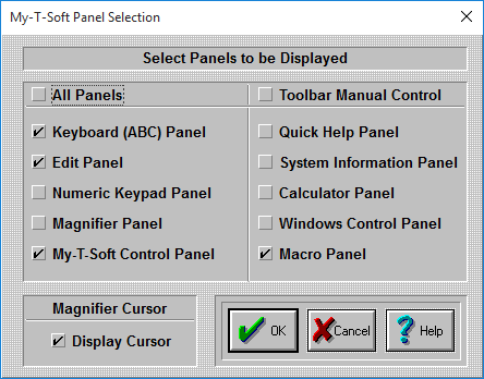 If you want ALL panels to be open every time you run My-T-Soft, click on the "All Panels" Check-Button.