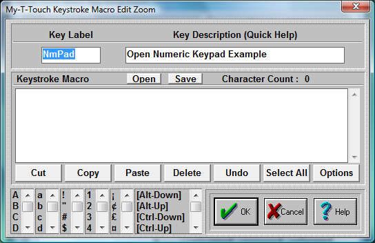 You may edit the Keystroke Macro directly in the Edit window. You may wish to refer to the Advanced User Notes for options & details regarding the keystroke macros.