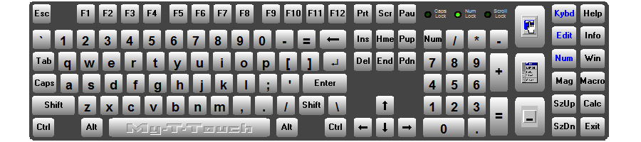 My-T-Touch®Touchscreen Keyboard Softwarefor the ultimate in Touch screen User InterfacesMy-T-Touch® now includes IMG's Build-A-Board Editor & Online Layout Database with thousands of layouts for the ultimate Touch screen Keyboard User Interface.My-T-Touch is a touchscreen keyboard software utility designed for commercial, kiosk, industrial & POS applications. It's the same software as My-T-Soft (but Mobile, Rugged Tablet, & Touchscreen OEM manufacturers prefer the name My-T-Touch) For Windows 11 / 10 / 8.1 / 8 (32 & 64 bit) please see My-T-Soft Utilities My-T-Touch provides a natural, intuitive extension to the touchscreen interface. It offers a touchscreen keyboard (on-screen keyboard emulation) that works with ANY Windows applications. It is ideal for network logons, security passwords, ID authentication, production quantity entry, notes, name entry, and a variety of other uses, especially big displays that require a large touchscreen keyboard. By allowing systems to operate without the need for a physical keyboard, external templates, plastic membranes, or buttons, My-T-Touch can provide the finishing touch on sealed systems that only requires the touchscreen interface for user input. For Terminal Server / Terminal Services, see My-T-Soft Terminal Server For Windows CE, Linux, or other O/S's, see the My-T-Soft Build-A-Board System For Custom Keypads and Panels, see Build-A-Board Keyboard Designer OEM/VAR Custom Versions and Site/Enterprise Licenses available. |