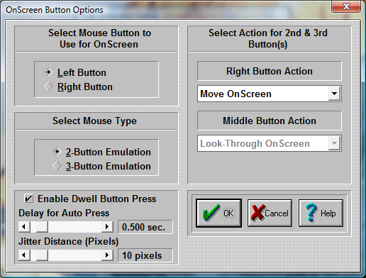 Select Mouse Button to use on OnScreen Here you define which button on your Mouse is going to be used as a point-and-click button. This button will be the execution button.