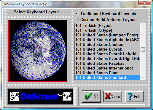 OnScreen can operate with many different keyboard layouts. By selecting the same keyboard layout that Windows uses, you can synchronize the display on OnScreen with the characters generated in your application.