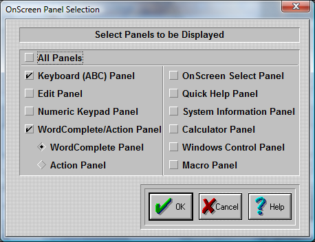 If you want ALL panels to be open every time you run OnScreen, click on the "All Panels" Check-Button.