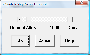 The 2 Switch Step Scan uses the Mouse buttons as a stop/go control and a click. When the Left Button is selected, the Right mouse button will be a stop / go control for the CrossScanning scan, and the Left mouse button will be the click to advance in the CrossScanning process. If Right Button is selected, the Left mouse button will be a stop/go control for the CrossScanning scan, and the Right mouse button will be the click to advance in the CrossScanning process.
