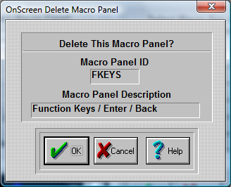 Use with extreme caution. Once the panel is deleted, it cannot be recovered! Press the OK Button to Delete the Selected Macro Panel. If you do not want to delete your panel, press the CANCEL button. |
